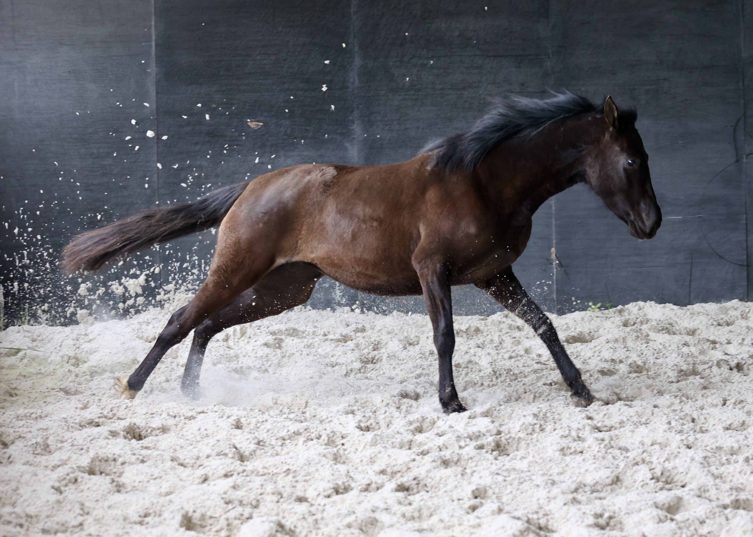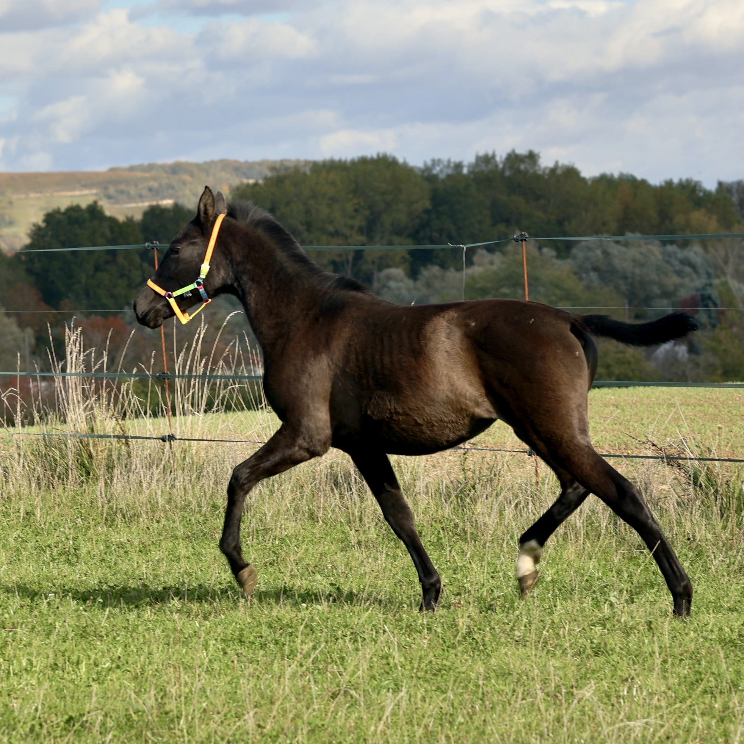 Lobrega est une très jolie jument de robe noire, née le 24 janvier 2021 à l’Élevage Gouello. Elle a rejoint notre élevage en juillet 2021, à l’occasion de notre mariage